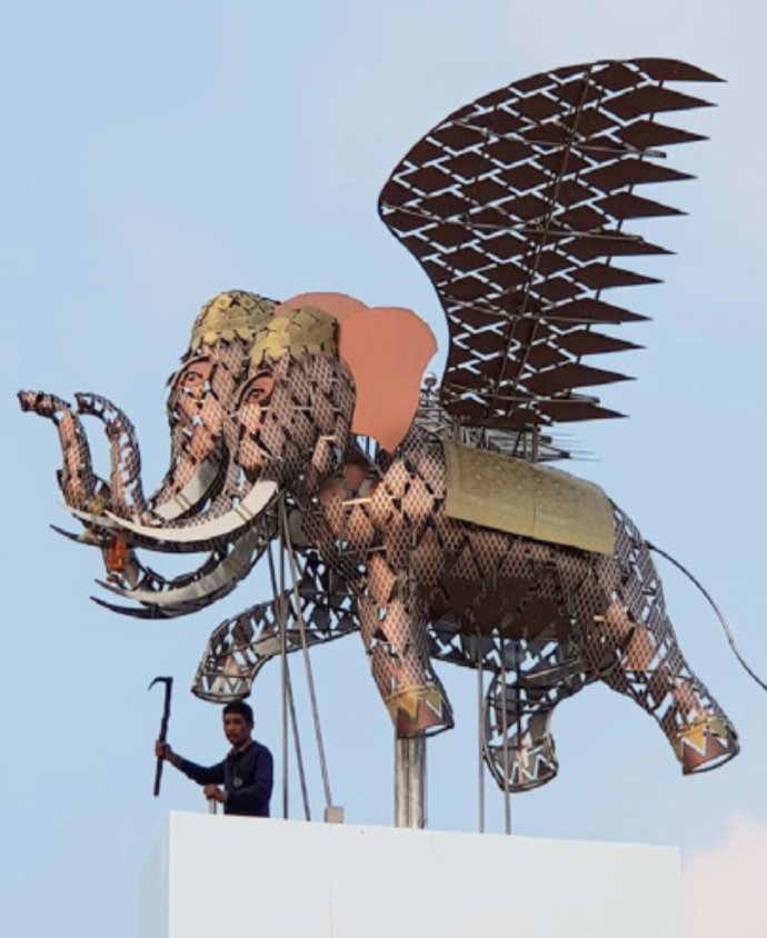 including mural paintings, various types of still & mechanical controlled sculptures and kinetic arts.